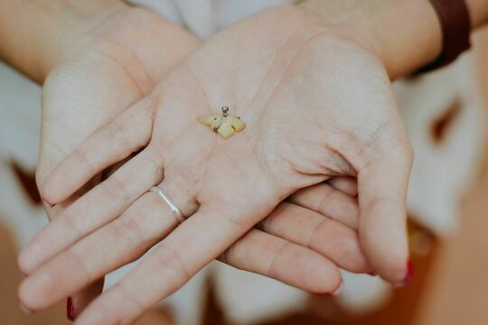 Um simples pingente que ganhei de mainha quando criança, um objeto que me acompanha desde a minha infância foi o estopim para toda o processo da identidade visual. E aí foi só contar pra Roberta Brack do Estudio Revu pro negócio acontecer. O curioso é que esse pingente já andava me acompanhando há um tempo, tanto que em dois momentos específicos de dois cursos distintos que falavam sobre memória eu levei o pingente para me representar quando pediram pra levar um objeto que falasse sobre minha pessoa, mas eu demorei a perceber essa conexão com essa possibilidade da marca.